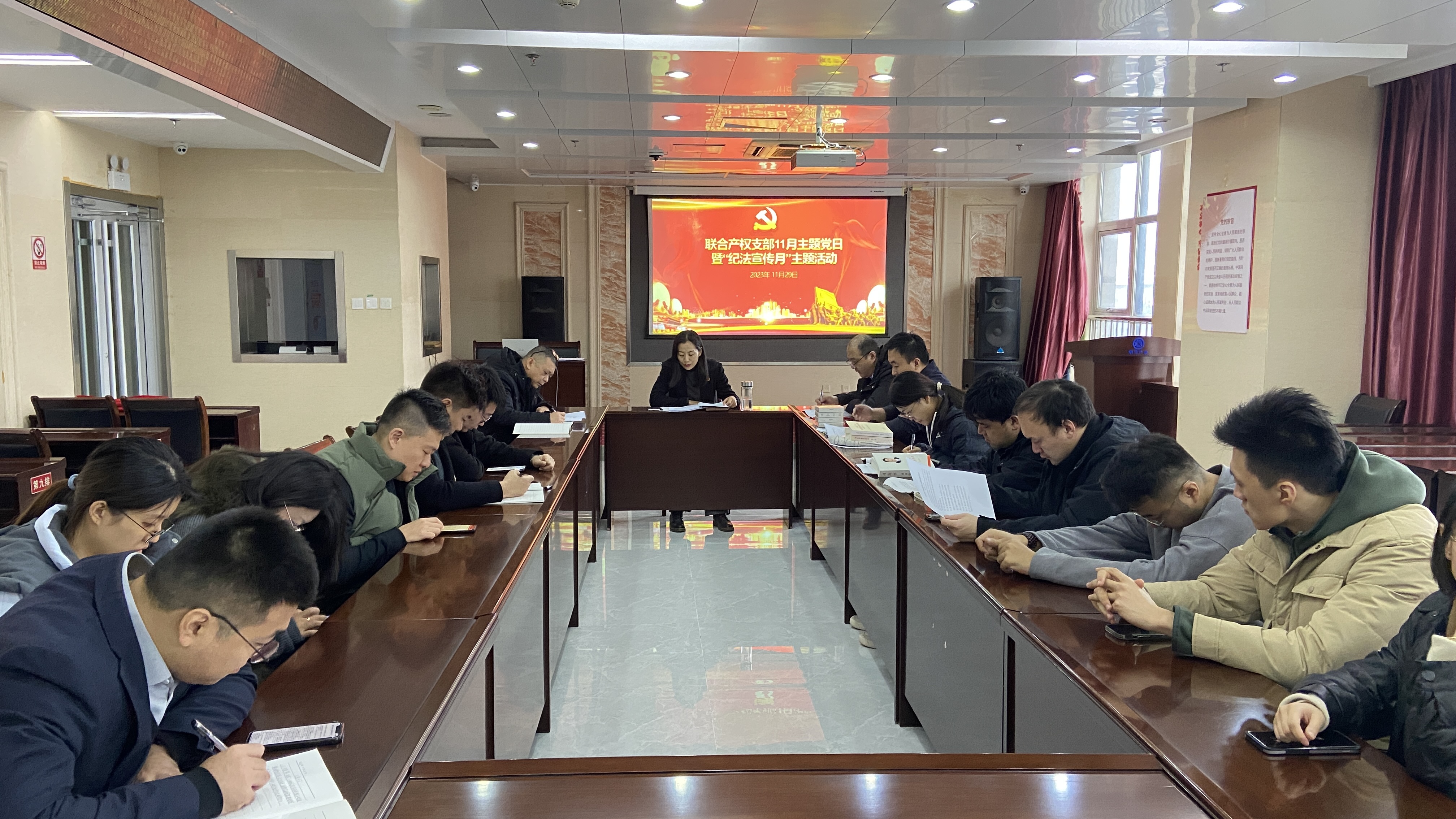 11月29日,聯(lián)合產(chǎn)權(quán)黨支部開展11月份主題黨日暨“紀(jì)法知識自主研學(xué)月”主題活動。會前,召開支委會,進行“第一議題”學(xué)習(xí)研討,對貫徹落實習(xí)近平總書記重要指示批示精神情況進行“回頭看”。