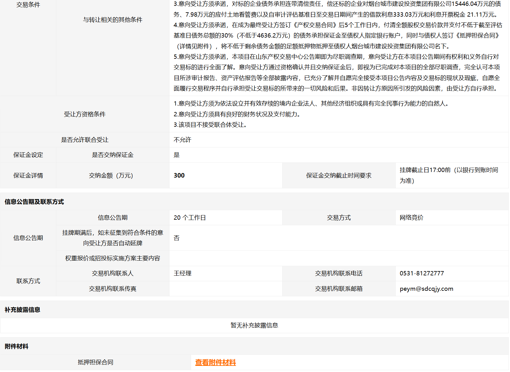 煙臺保稅開發(fā)投資有限公司16%國有股權