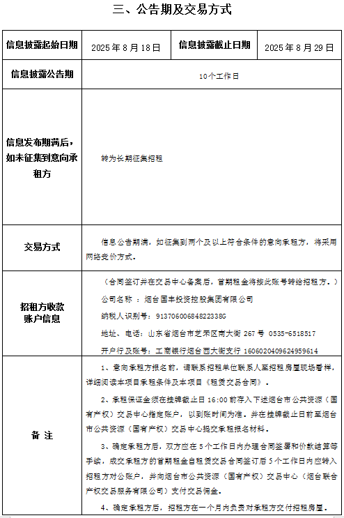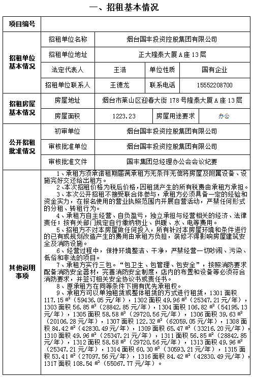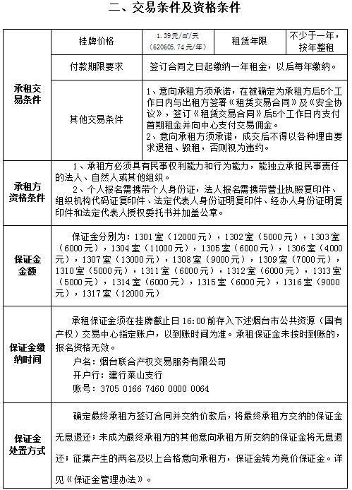 芝罘區(qū)北馬路240號大樓部分1層及2-3層招租交易公告