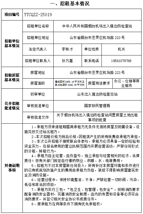 煙臺市芝罘區(qū)機場路223號房地產招租公告
